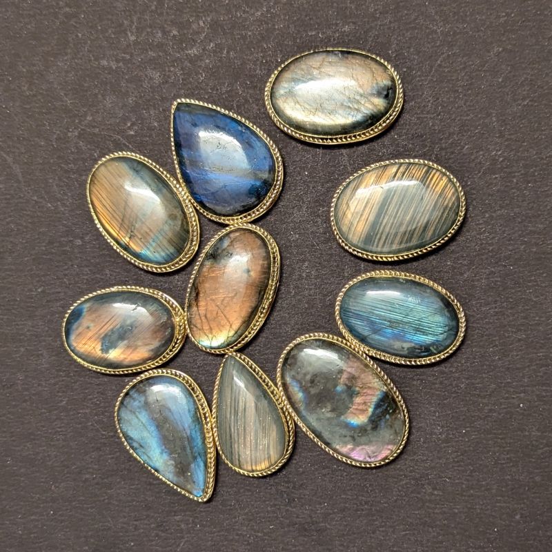Lot de 10 Pierres Rainurées en Laiton doré avec pierres naturelles: labradorite