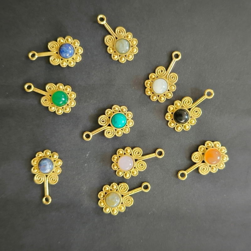 Lot de 10 charms en laiton doré avec pierres naturelles, mix pierre
